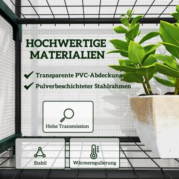 – Förlängd odlingsperiod: med vårt växthus är det enkelt att skydda dina växter mot temperaturvariationer. Lämpligt för odling av tropiska växter, grönsaker, frukt, örter, blommor och mycket mer