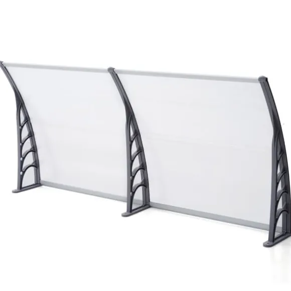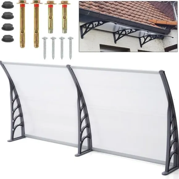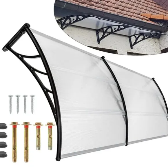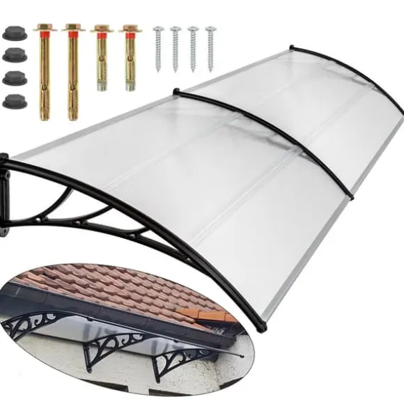 Detta svarta dörr- och fönstertak ger pålitligt skydd mot regn, snö och skadlig solstrålning utan att blockera dagsljuset. Den transparenta polykarbonatskivan med UV‑skydd bevarar ljusinsläppet samtidigt som den reducerar blekning av dörrar och fasader.