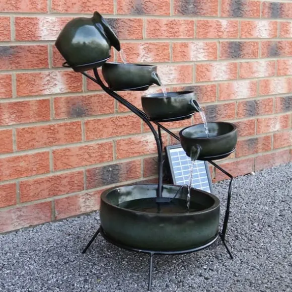 En attraktiv dekoration till din trädgård som är annorlunda och avslappnande. Denna fontän av resin är vädertålig och tål även de riktigt regniga dagarna. Med den medföljande solcellen kan batteriet laddas och hålla igång vattenfunktionen i upp till 6 timmar under molniga dagar eller sena kvällar. Njut av de varma sommarkvällarna till bruset av vattnet-funktionen!