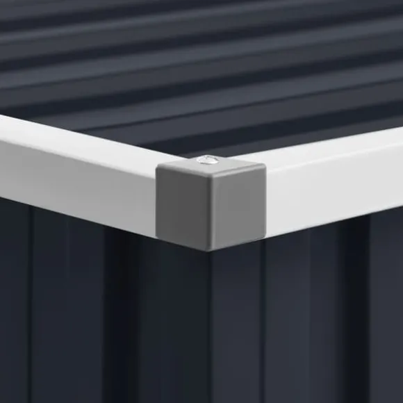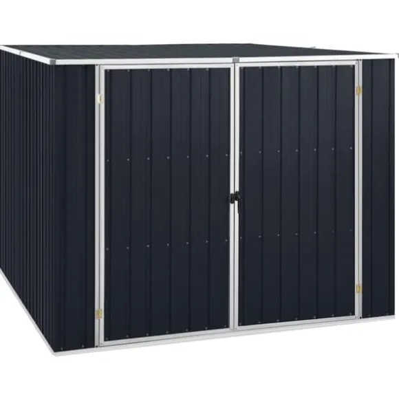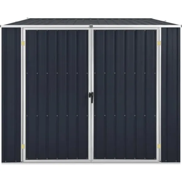 Detta trädgårdsskjul är tillverkat i galvaniserat stål, kräver mycket lite underhåll och är mycket hållbart. Dubbeldörren framtill gör det enkelt att ta sig in och ut. Dessutom rinner regnvatten av taket tack vare dess sluttande design.