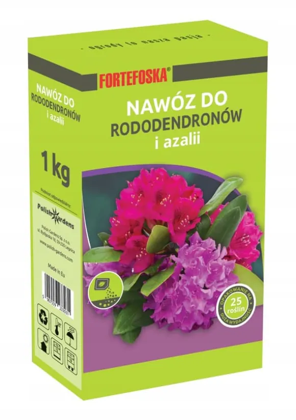 Att applicera gödselmedel på rhododendron ökar antalet blommor, förbättrar bladfärgen och stimulerar växten att producera fler gröna delar. Detta gödselmedel har en lätt försurande effekt, vilket avsevärt påverkar odlingen av växter som kräver en sur jordreaktion. Toppgödsling av växter bör utföras två gånger om året, i april och juni. Fortefoska-gödselmedel kan också användas för att förbereda jorden före plantering.