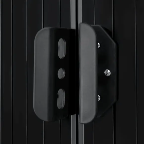 Skjulet har 4 ventiler, 2 fram och 2 bak, vilka garanterar en utmärkt luftcirkulation. De dubbla skjutdörrarna framtill gör att du enkelt kommer in och ut.