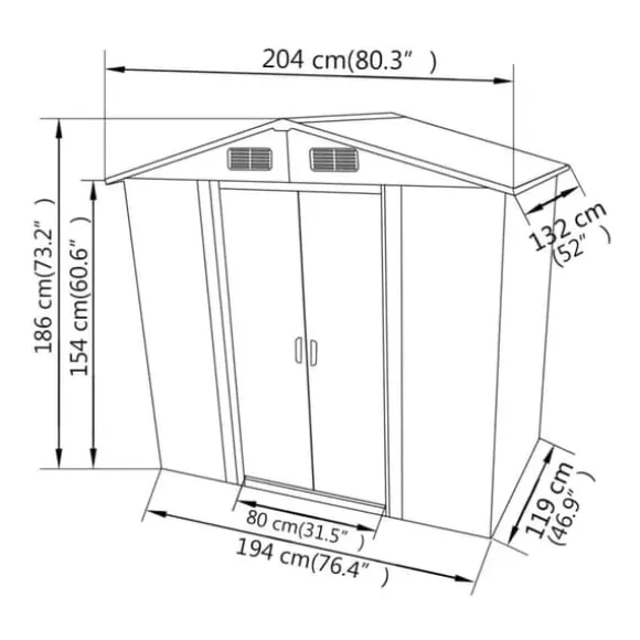 Skjulet har 4 ventiler, 2 fram och 2 bak, vilka garanterar en utmärkt luftcirkulation. De dubbla skjutdörrarna framtill gör att du enkelt kommer in och ut.