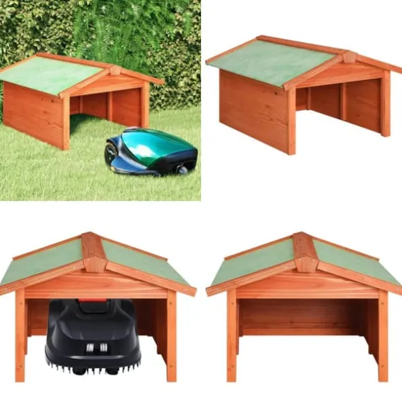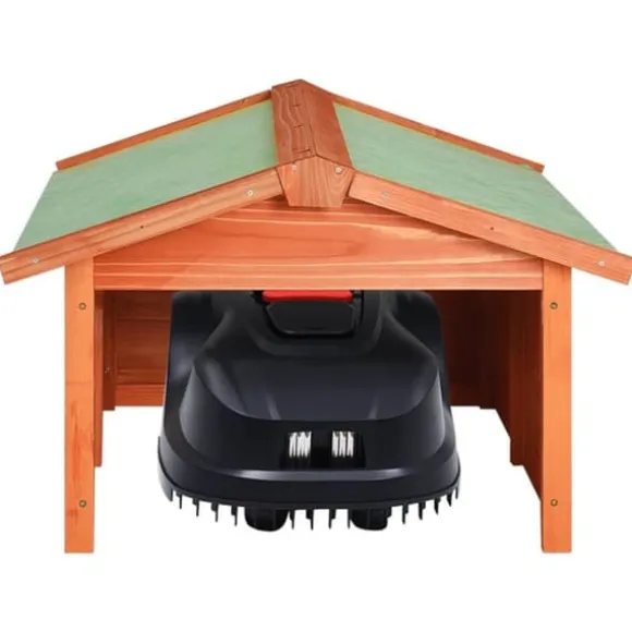 Detta hus till robotgräsklippare är tillverkat i massivt granträ och är hållbart och lämpligt för utomhusbruk. Det skyddar effektivt din gräsklippare och laddningsstationen för regn, snö och skadliga UV-strålar. Därför förlänger garaget gräsklipparen och dess tillbehörs livslängd. Den rustika och enkla designen passar i de flesta trädgårdar. Huset monters snabbt och flyttas enkelt, det behövs inga fästen.