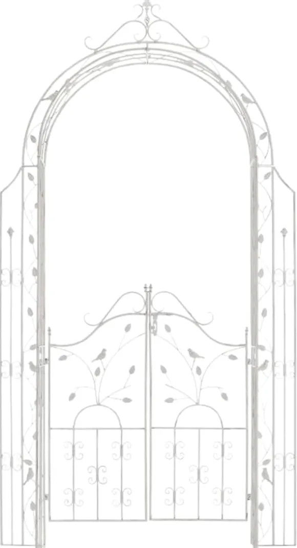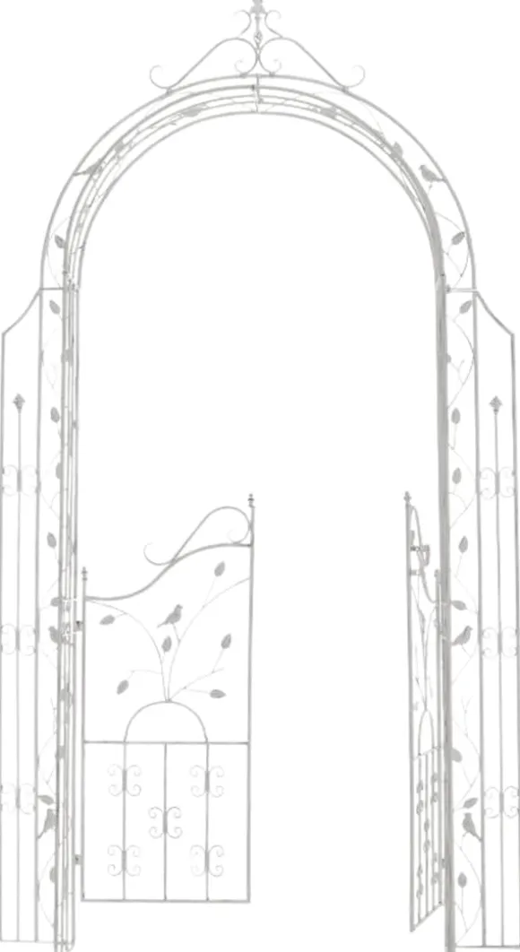 Vår exklusiva trädgårdsbåge med grind är kärleksfullt dekorerad med många detaljer, vilket gör den perfekt som ett klättringshjälp för murgröna och andra klättringsväxter. Denna båge med sina två låsbara och vackert dekorerade grindvingar är också en imponerande ögonfångare i vilken trädgård som helst.