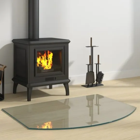 Denna glasplatta för öppen spis kan användas som golvbeläggning för att skydda ytan på ett befintligt golv.