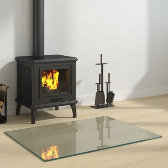 Denna glasplatta för öppen spis kan användas som golvbeläggning för att skydda ytan på ett befintligt golv.
