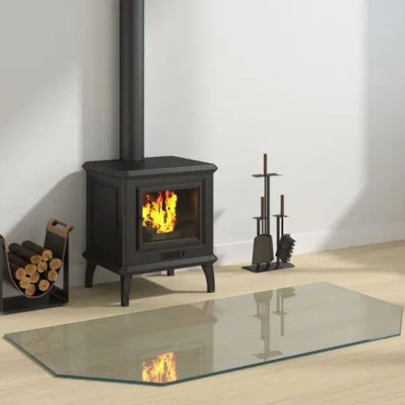 Denna glasplatta för öppen spis kan användas som golvbeläggning för att skydda ytan på ett befintligt golv.