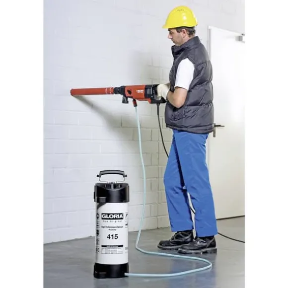 Inom bygg- och anläggningsarbeten, inom stålbygge eller vid saneringsarbeten på fasader används ofta diamant-kärnborrmaskiner. Dessa kräver kontinuerlig tillförsel av kylvatten för att motverka värme och materialslitage. Gloria vatteninföringsapparat 415 utmärker sig genom sina flexibla användningsmöjligheter. Det kan anslutas till både handhållna och borrstående våtborrmaskiner, liksom till slipmaskiner eller liknande utrustning. Vatteninföraren rymmer 10 liter och arbetar med ett maximalt arbetstryck på 6 bar. OBS! Vi beklagar att vi inte har hunnit översätta denna produkttext. Texten nedan är maskinöversatt från tyska.