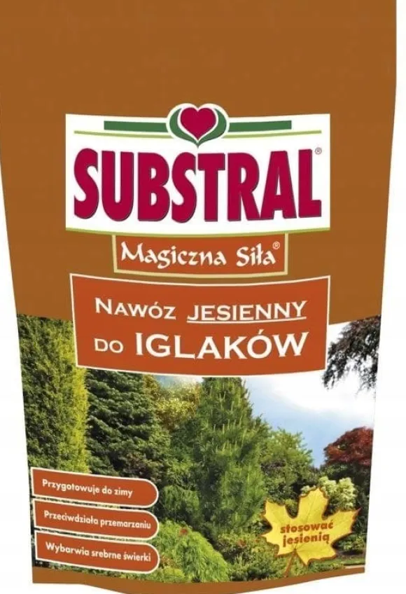 Substral Magiczna Siła höstgödsel för barrträd är ett specialiserat gödselmedel som ökar frostmotståndskraften genom att förtjocka växtens sav. Motverkar de negativa effekterna av stora temperaturförändringar, särskilt vid övergång mellan noll och minus/plus. Gödningsmedlet framhäver färgen på barrträd, särskilt silverfärgade.