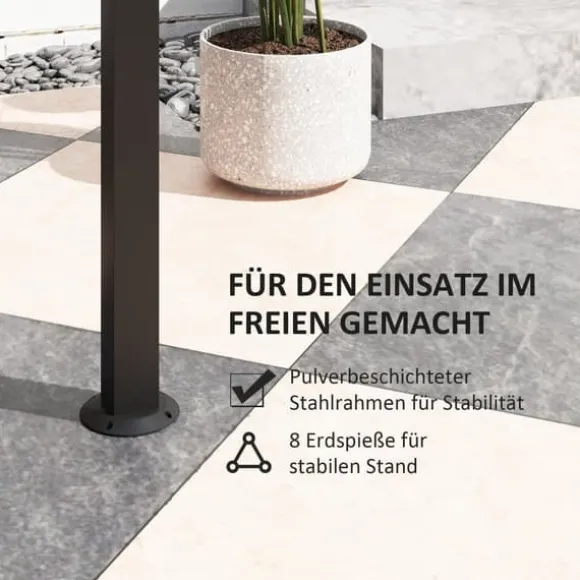 – Stålram: med pulverlackering för extra styrka som håller i många grillsäsonger. Pergolans jordspett ingår i leveransen för att garantera utmärkt stabilitet