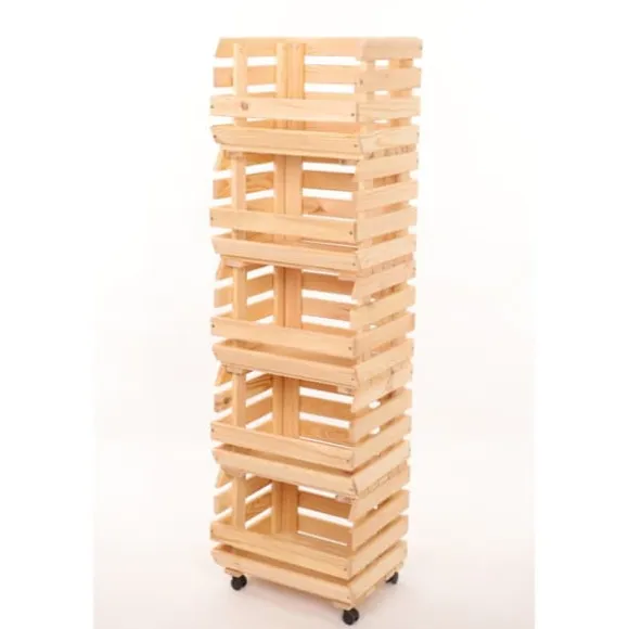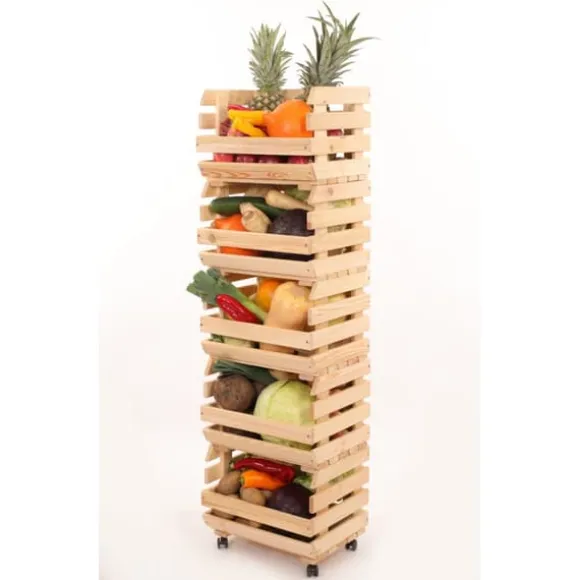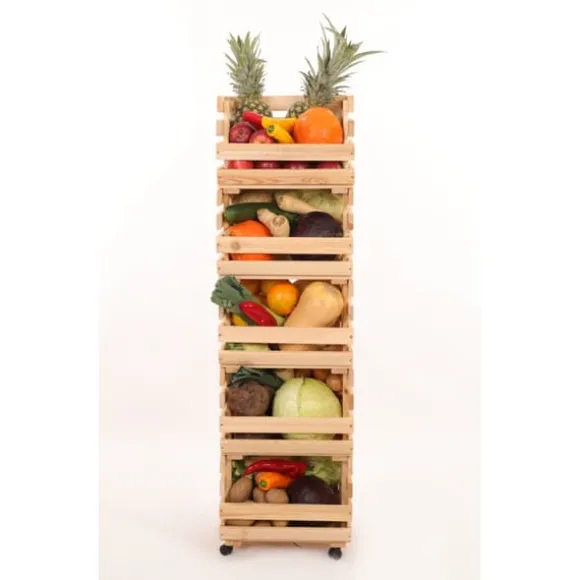trä låda för grönsaker / fruktställ / låda / hylla 132 x 37 x 30 cm med hjul / tall