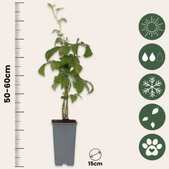 Vid leverans har plantorna en höjd på 50-60 cm, mätt inklusive plantskolekrukan. Plantorna levereras i en plantskolekruka med en diameter på 15 cm.