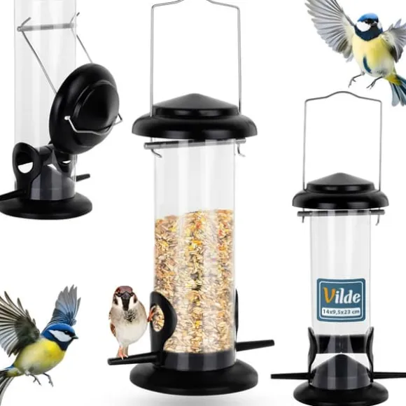 Lätt att fylla och rengöra – Det gångjärnsförsedda locket gör det enkelt att hälla i frön och rengöra mataren, vilket säkerställer hygienisk användning.