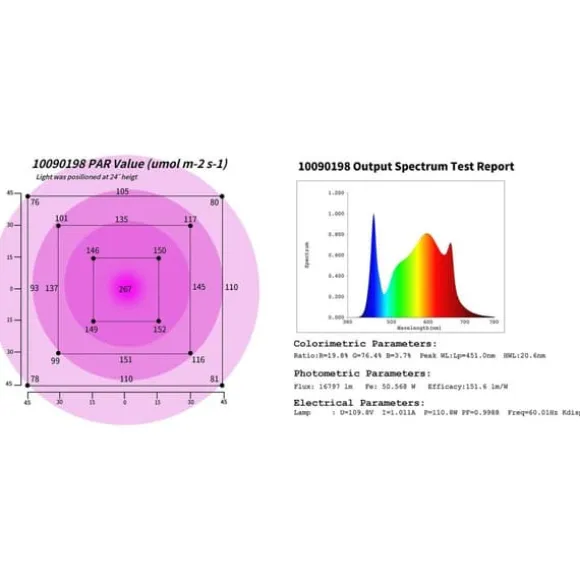 Det breda ljusspektrumet med våglängder på 380-780 nm garanterar optimal och hälsosam tillväxt och vital fotosyntes för dina växter. Växterna absorberar mer än 95% av ljuset och man kan använda fullspektrumlampan från frö till full blom eller skörd. Med detta balanserade spektrum kan tillväxtfasen förkortas avsevärt med samma eller ännu högre avkastning. Det är inte ens nödvändigt att växla mellan de enskilda LED-typerna under de olika faserna.