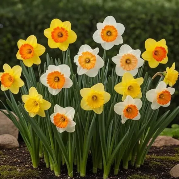 Större narcisser med fräscha blommor, i ett strålande vitt.