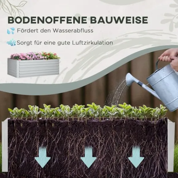 – Stabil stålkonstruktion: En robust upphöjd planteringslåda i stål med en skyddande beläggning som skyddar mot lätt väder och slitage