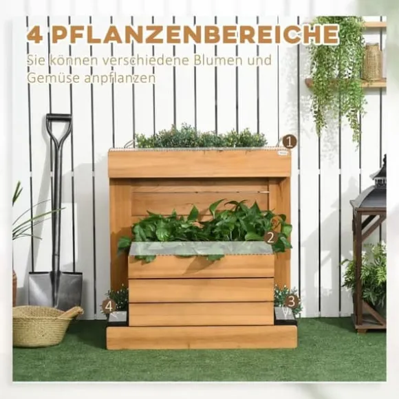 – 4 planteringslådor: Denna örtagård är utrustad med 4 planteringslådor och är utformad för att maximera odlingsytan. Den är lämplig för att odla olika grönsaker, örter och blommor i en upphöjd odlingsbädd.