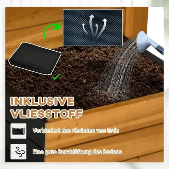 – Ram av massivt trä: Tillverkad av naturligt och lackerat granvirke, perfekt för odling av växter. Trädgårdsbädden kan placeras inomhus eller utomhus under olika årstider.