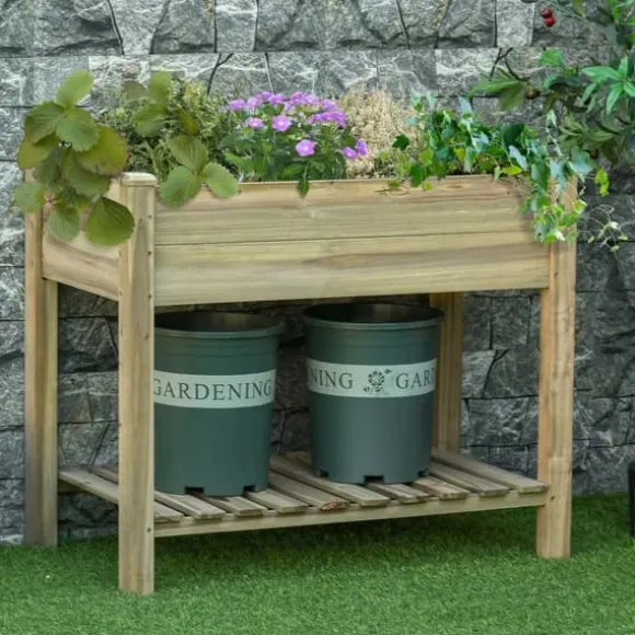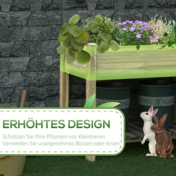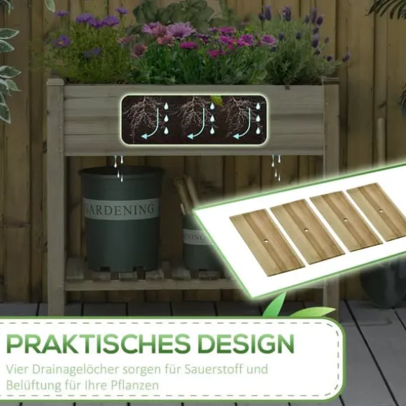 – Tvåstegsdesign: Denna höga rabatt har två nivåer. På den nedre, inbyggda förvaringshyllan kan du praktiskt förvara planteringsverktyg och tillbehör. Mellanrummen mellan bottenplattorna säkerställer dessutom effektiv dränering