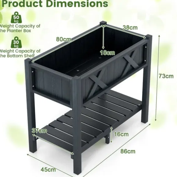 - Vikt kapacitet för planteringslådan: 49.9 kg