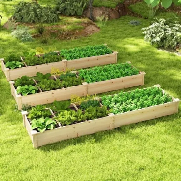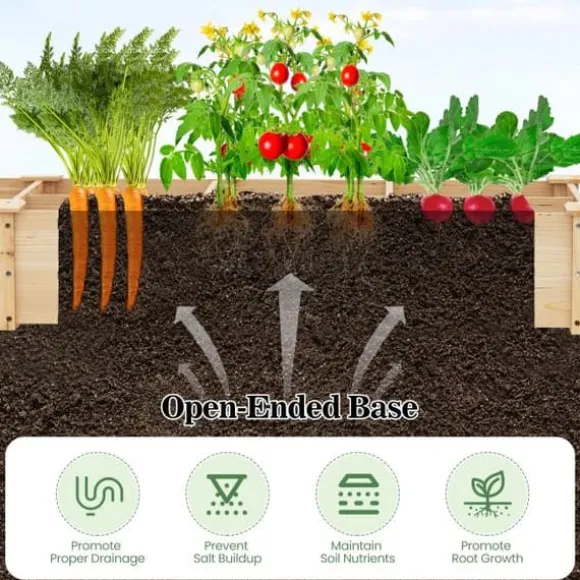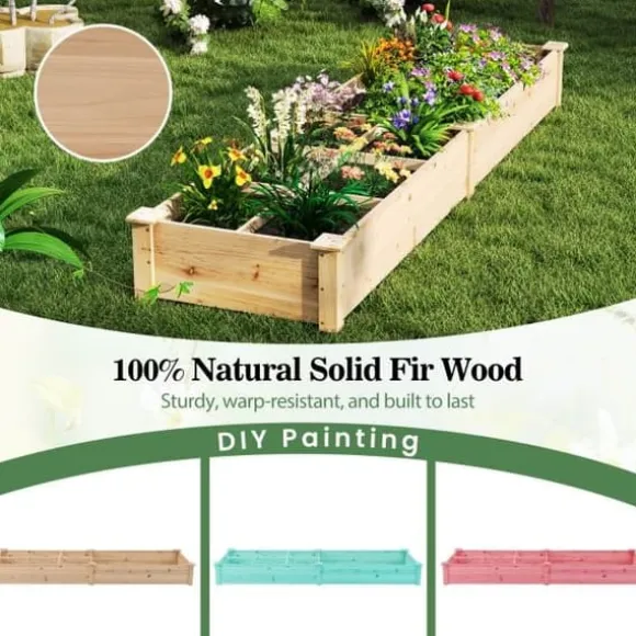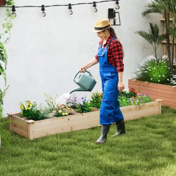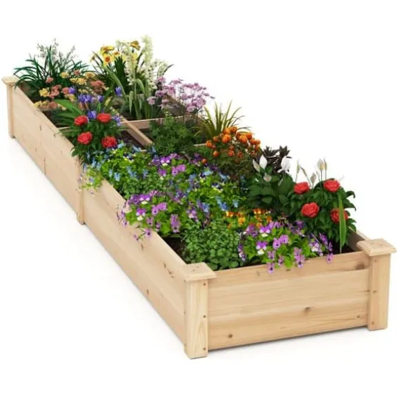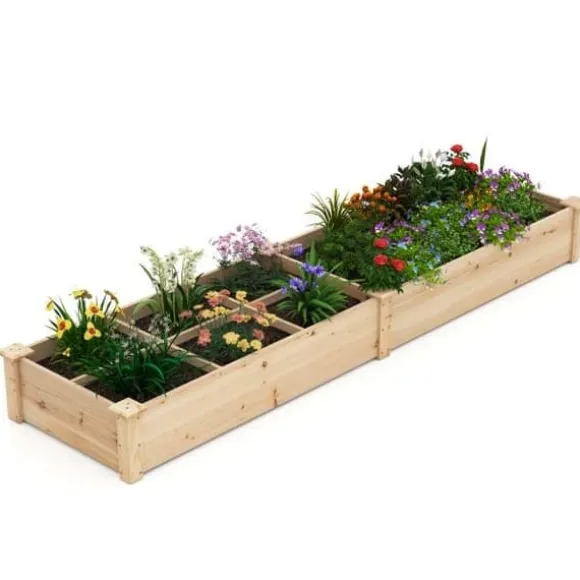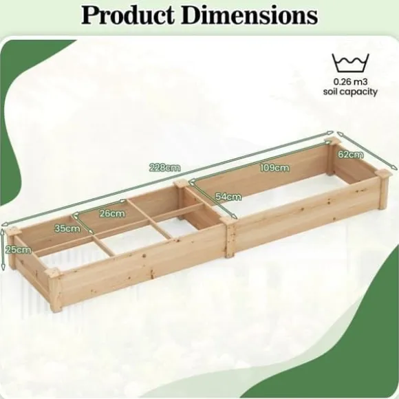 Höjdbädden Trädgårdsbädd i trä med 2 planteringslådor och avdelare är perfekt för dem som älskar trädgårdsarbete hemma. Denna stora, stadiga, fura träbädd ger gott om utrymme för olika växter och har en öppen botten för optimal dränering, vilket säkerställer att dina växter trivs i en hälsosam miljö.Produktens egenskaper inkluderar:
