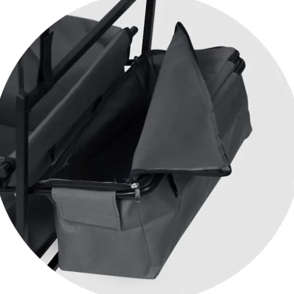 Vagnens design gör det enkelt att manövrera(även med tyngre last). Det bekväma handtaget