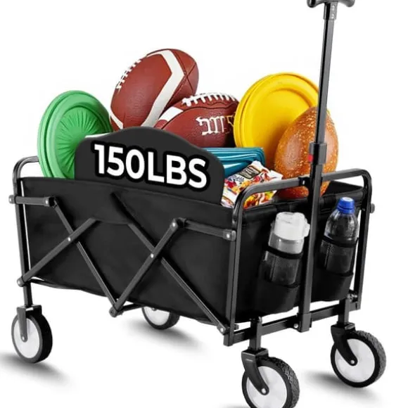 Hopfällbar svart vagn för trädgård, shopping och campingDenna lätta men robusta hopfällbara transportvagn i svart klarar upp till 60 kg och är perfekt för vardag och friluftsliv. Med 360°-hjul, justerbart handtag och slitstark 600D Oxford-duk rullar du smidigt över olika underlag.