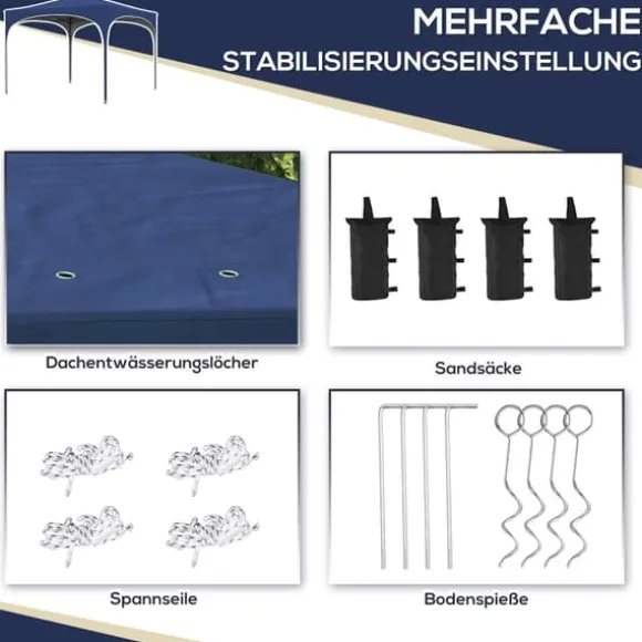 - Inkluderar 1 hopfällbar paviljong, 4 sandsäckar, 4 spännlinor, 8 tältpinnar, 1 bärväska, 1 bruksanvisning