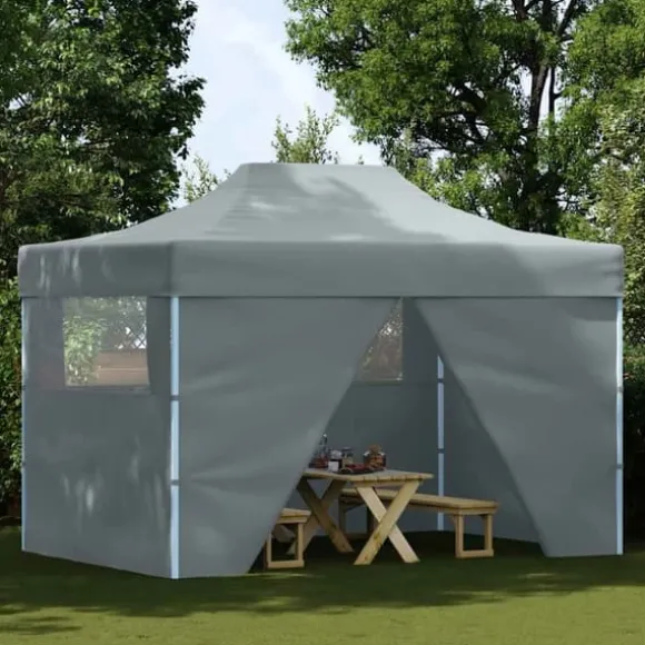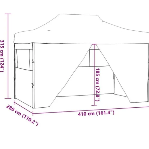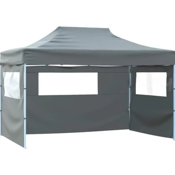 Detta partytält har ett UV- och vattenresistent tak som är tillverkat i 600D-oxfordtyg med PVC-beläggning och är därför perfekt för användning utomhus. Partytältet är utformat med 4 sidoväggar med klara fönster för fullt skydd. Ramen är tillverkad i rostbeständigt pulverlackerat stål, vilket gör tältet stadigt och hållbart. Pop-up tältet är hopfällbart för enkelt förvaring och transport. Det är lätt att montera.