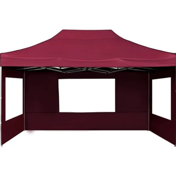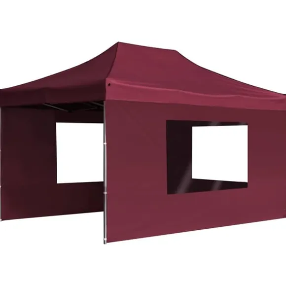 Taket är tillverkat i oxfordtyg med PVC-beläggning och skyddar dig mot skadliga UV-strålar i direkt solljus. Den stadiga ramen är massivt tillverkad av slitstark, rostfri aluminiumlegering. Partytältet har sidopaneler, samtliga dekorerade med PVC-fönster. Dess lätta hopvikbara design gör det enkelt att flytta, transportera och förvara tältet när det inte används, vilket gör det perfekt för utomhusevents.