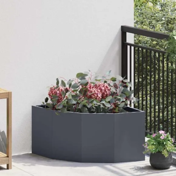Den här hållbara hörnplanteraren är ett grymt tillskott till ditt utomhusutrymme. Den är gjord för att vara både funktionell och snygg. Med sin hörnmodell passar den perfekt i trånga områden utan att ta för mycket plats. Den stiliga designen gör den till en riktig blickfångare i trädgården, så om du vill fräscha upp din utomhusmiljö är detta lösningen för dig.