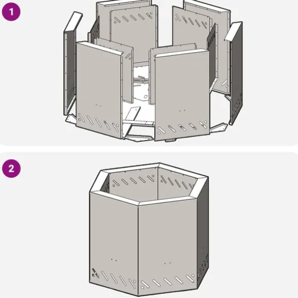 - Modern Hexagonal Form En cool tvist på traditionella eldstäder, det här sexsidiga mästerverket är inte bara en fokuspunkt utan också en diskussionsstartare för varje utomhusbjudning. Den smarta formen maxar nyttjandet av utrymme utan att ta över. Den släta profilen passar alla typer av inredning, från urban chic till lantlig rustik, vilket förhöjer stämningen på dina träffar.