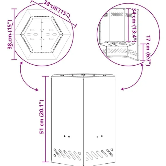 Den här moderna hexagonala utomhuseldstaden lyfter vilken utomhusmiljö som helst med sin coola, samtida design. Perfekt för den som gillar minimalistisk stil och smälter lätt ihop med rena linjer och funktionalitet. Den bjuder in till samvaro, vilket ger oförglömliga stunder med vänner och familj. Den släta finishen och smarta designen gör den till en showstopper i utomhusdekor, och lovar både elegans och praktisk nytta.