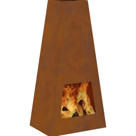 Den här konformade utomhuskaminen kombinerar modern design med praktisk användning. Tillverkad av hållbart stål ger den matt finish ett snyggt utseende och klarar vädret – perfekt för din balkong på kalla höstkvällar.