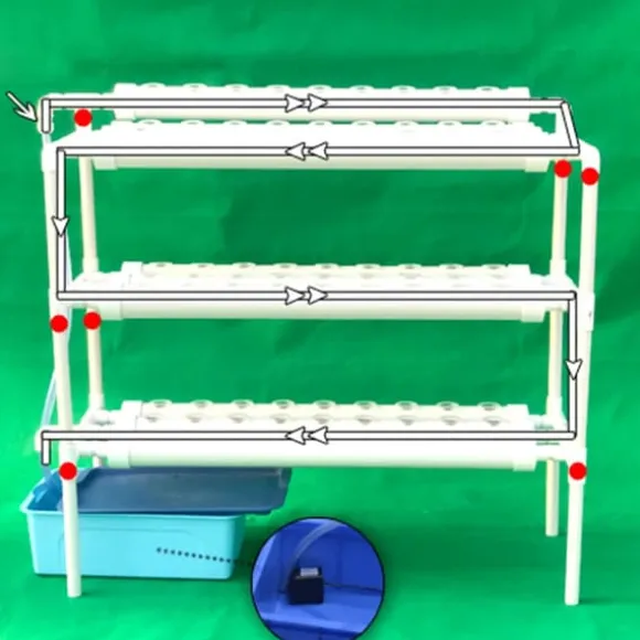 Hydroponiskt system med 3 nivåer och 108 odlingsplatserDetta vita system i PVC‑U rymmer 108 noggrant borrade odlingshål för frisk, jordfri odling hemma, i trädgården eller på kontoret. Tre nivåer maximerar utrymmet medan syrerikt vatten når rötterna direkt för krispiga bladgrönsaker och örter.