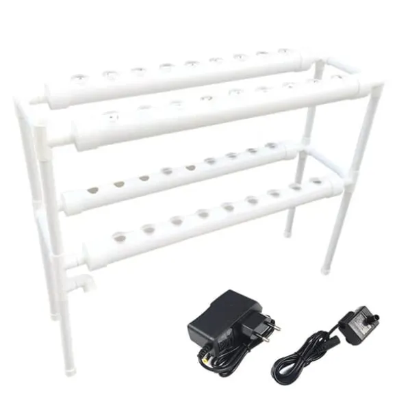 Tvålagers hydroponiskt system med 36 hål för enkel odling hemmaDetta kompakta, tvåvåningssystem med 36 planteringsöppningar ger ren och effektiv odling på balkongen eller inomhus. Livsmedelsgodkända korgar (Ø 3,2 cm), tåliga PVC‑U-rör och automatisk bevattning säkerställer läckfri drift utan lim – bara sätt ihop och börja odla.