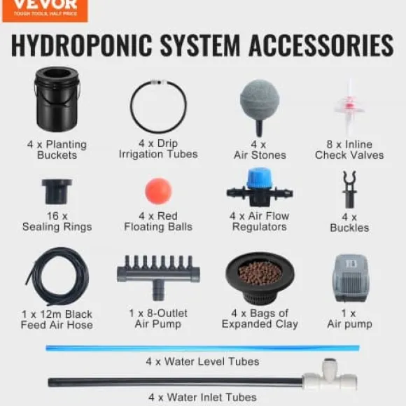 Detta hydroponiska odlingssystem är utformat för effektiv och bekväm odling av bladgrönsaker och erbjuder en komplett deep water culture-uppsättning med ett toppdroppbevattningskit. Dess hållbara, korrosionssäkra material och användarvänliga funktioner säkerställer långvarig och problemfri växttillväxt, medan den kraftfulla luftpumpen och luftstenarna ger optimal syresättning för hälsosam rotutveckling. Systemet levereras med alla nödvändiga tillbehör för enkel installation och underhåll.