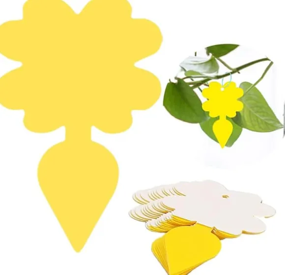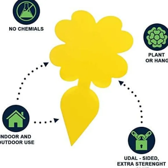 Klibbig fälla: Insektfälla i form av en liten rotfrukt och i lysande gul färg som lockar till sig flygande insekter där de fastnar på limmet. Sätt i den drabbade krukan eller ha i fruktskålen för att bli av med bananflugor.
