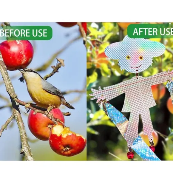 Denna reflekterande fågelskrämma kan hängas upp för att sedan svaja i vinden och skrämma bort fåglar gemom att reflektera solljus. Fågelskrämman är samtidigt en fin dekoration på balkongen eller i trädgården.