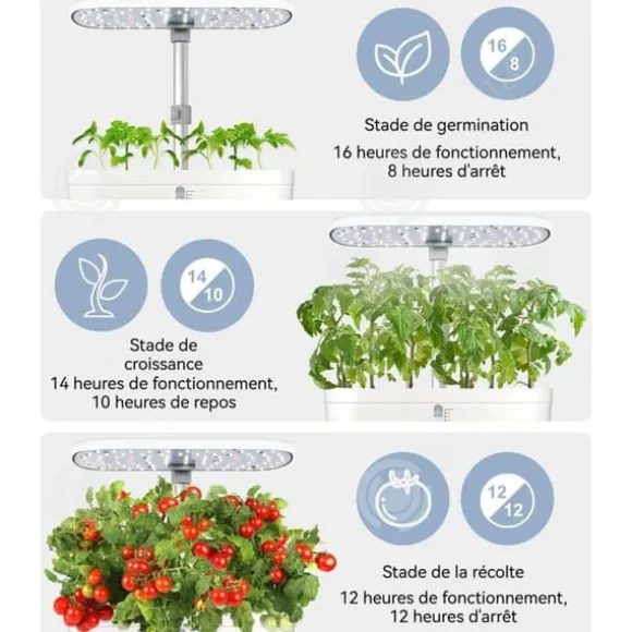 1. Skörda när som helst, var du än är: detta inomhusodlingssystem är utrustat med en effektiv LED-växtlampa på 24 W som simulerar optimala solbelysningsförhållanden.