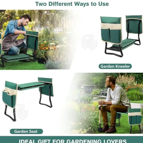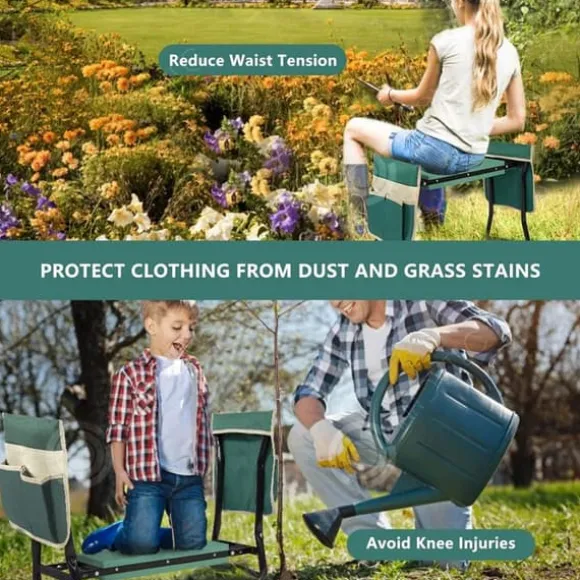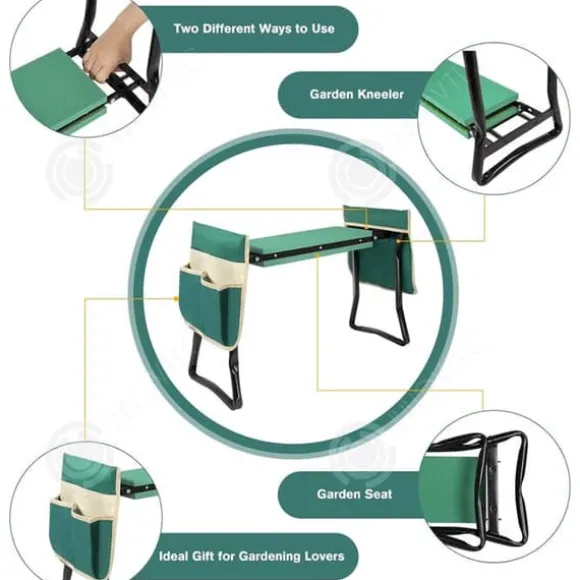 4. Multifunktionell design: Mångsidigheten hos denna trädgårdsbänk återspeglas i dess design, att den kan användas som en sittplats eller vändas för att fungera som en knästående kudde. Den är idealisk för trädgårdsentusiaster.