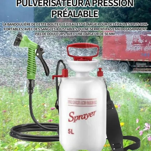 1. Effektiv turboboost: Denna produkt har en större diameter för pumpstången, vilket sparar tid och energi. Den integrerade designen av krukans mun och kroppen gör den mer solid och hållbar. 2. Komfort: Axelremmen på denna vattenflaska är breddad för bekvämare axlar, med justerbara remmar som inte drar åt eller orsakar smärta, med en bredd på 56 mm. 3. Funktionalitet: Denna spruta är utrustad med fyra typer av bevattningsmunstycken och sju olika vattensprutningslägen, lämpliga för olika miljöer och bevattningsbehov. 4. Lätt att bära: Denna spruta är medelstor, lätt att bära och använda när som helst. Produktnamn: Trädgårdsspruta utomhus Material: Plast Mått: 41x18cm Kapacitet: 5 liter Slanglängd: 3 meter