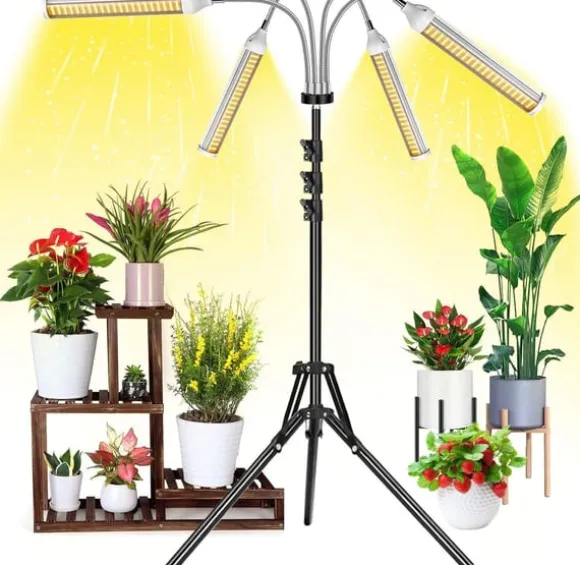 Uppgraderad växtlampa med 4 huvuden: Den senaste uppgraderade växtlampan med fyra huvuden erbjuder en bredare täckning än växtlampor med två eller tre huvuden. De 4 huvudena möjliggör samtidig odling av fler växter. Lämplig för inomhusplantor, krukväxter, bladsticklingar, växthusgrönsaker, etc., hjälper till att påskynda tillväxten av krukväxter, blomväxter, lövväxter och suckulenter.