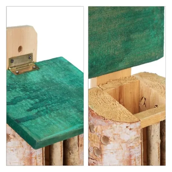- Naturligt trä med iögonfallande grönt tak