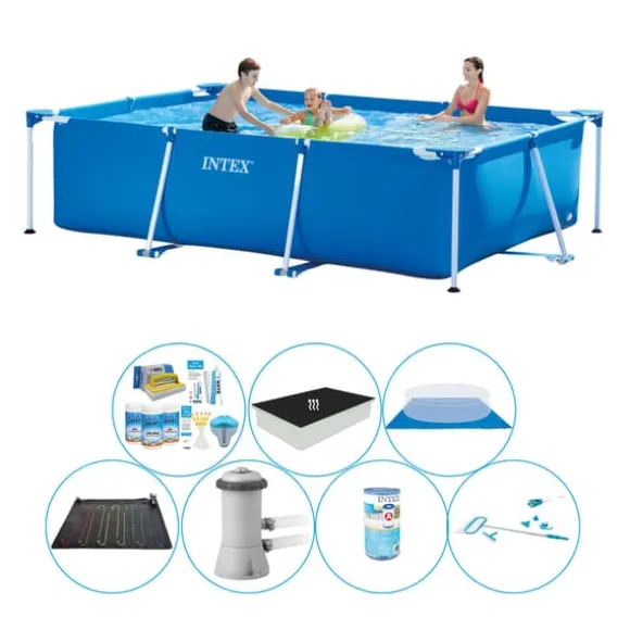Med detta Deluxe underhållsset har du alla rengöringsprodukter hemma! Maintenance Set Deluxe innehåller alla tillbehör som du också kan hitta i standardunderhållspaketet plus många extrafunktioner. Underhållssetet deluxe innehåller ett längre aluminiumhandtag (2,79m långt), vilket gör att du enkelt kan nå flera meter. Förutom landningsnätet för att fiska upp löv ur poolen innehåller detta set även en skurborste för att skrubba klibbig smuts från poolen, en dammsugarslang och en vakuumpump som du kan ansluta de olika sugmunstyckena till. Anslut ena sidan av dammsugarslangen till filterpumpen och den andra sidan till vakuumpumpen så kan du börja dammsuga din pool!