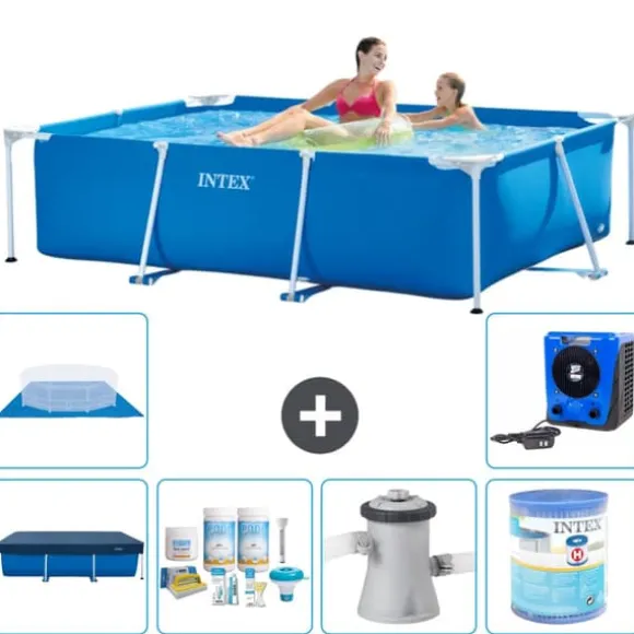 Intex rektangulär ram Simbassäng 220x150x60 cmUpptäck det ultimata simnöjet med Intex rektangulära ovanjordspool. Denna lyxiga pool erbjuder en solid och hållbar lösning för både unga och gamla. Med en snabb inställningstid på bara 30 minuter kan du omedelbart njuta av kylning i din egen bakgård. Tillverkad av stark polyesterförstärkt PVC, denna pool garanterar långvarig simglädje och klarar utan ansträngning det största vattennöjet. Lägg till lite stil till din trädgård och gör dig redo för sommarnöjen!