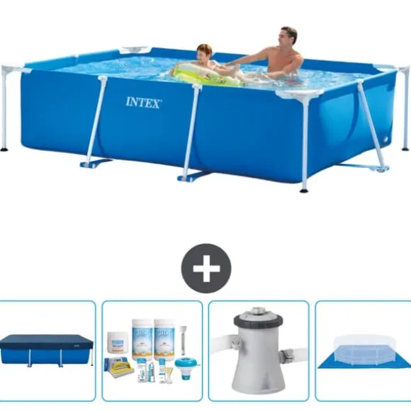 Intex rektangulär ram Simbassäng 260x160x65 cmUpptäck det ultimata simnöjet med Intex rektangulära ovanjordspool. Denna lyxiga pool erbjuder en solid och hållbar lösning för både unga och gamla. Med en snabb inställningstid på bara 30 minuter kan du omedelbart njuta av kylning i din egen bakgård. Tillverkad av stark polyesterförstärkt PVC, denna pool garanterar långvarig simglädje och klarar utan ansträngning det största vattennöjet. Lägg till lite stil till din trädgård och gör dig redo för sommarnöjen!