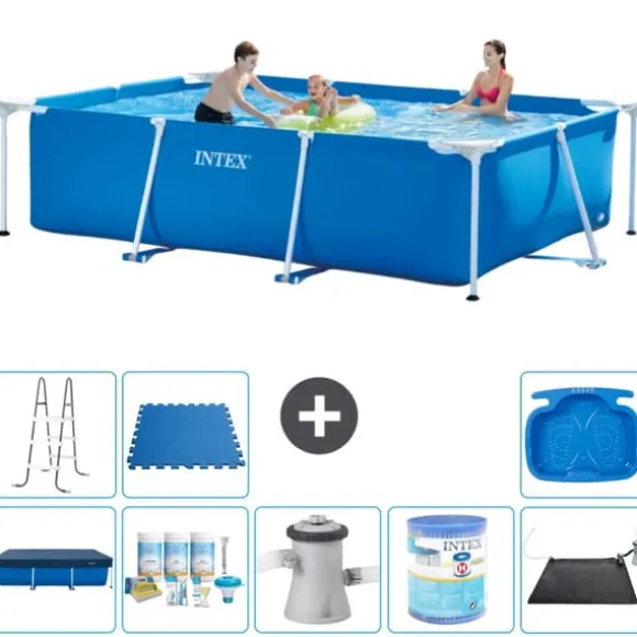 Intex rektangulär ram Simbassäng 300x200x75 cmUpptäck det ultimata simnöjet med Intex rektangulära ovanjordspool. Denna lyxiga pool erbjuder en solid och hållbar lösning för både unga och gamla. Med en snabb inställningstid på bara 30 minuter kan du omedelbart njuta av kylning i din egen bakgård. Tillverkad av stark polyesterförstärkt PVC, denna pool garanterar långvarig simglädje och klarar utan ansträngning det största vattennöjet. Lägg till lite stil till din trädgård och gör dig redo för sommarnöjen!