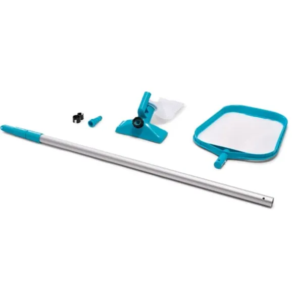 Inkluderar 2-delat Intex rengöringssetFör att snabbt och enkelt ta bort grov smuts från din pool innehåller detta paket Intex rengöringsset i 2 delar. Med detta underhållsset kan du ta bort både yta och smuts på botten på ett ögonblick. Detta rengöringsset har ett teleskophandtag på 239 centimeter långt. Detta set kommer också med ett sugmunstycke och ett landningsnät.